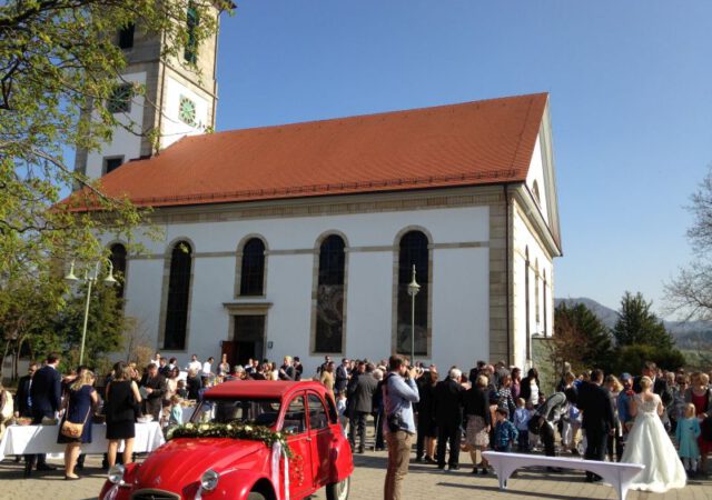 Man kann auch mit bescheidenem Brautauto unterwegs sein…Hier ein schönes Beispiel für einen Ständerling im Anschluss an den Traugottesdienst