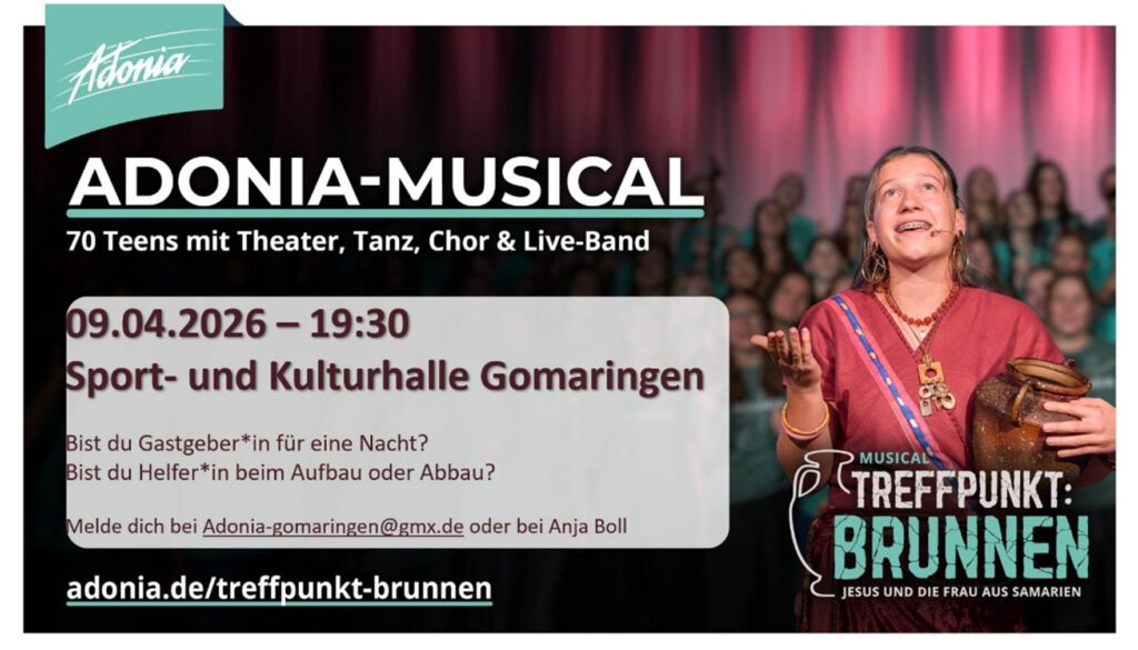 Wir sind dankbar für jeden Möglichmacher. Wenn Sie Kapazität für zwei oder mehr Personen haben melden Sie sich gern bei Anja Boll oder unter adonia-gomaringen@gmx.de