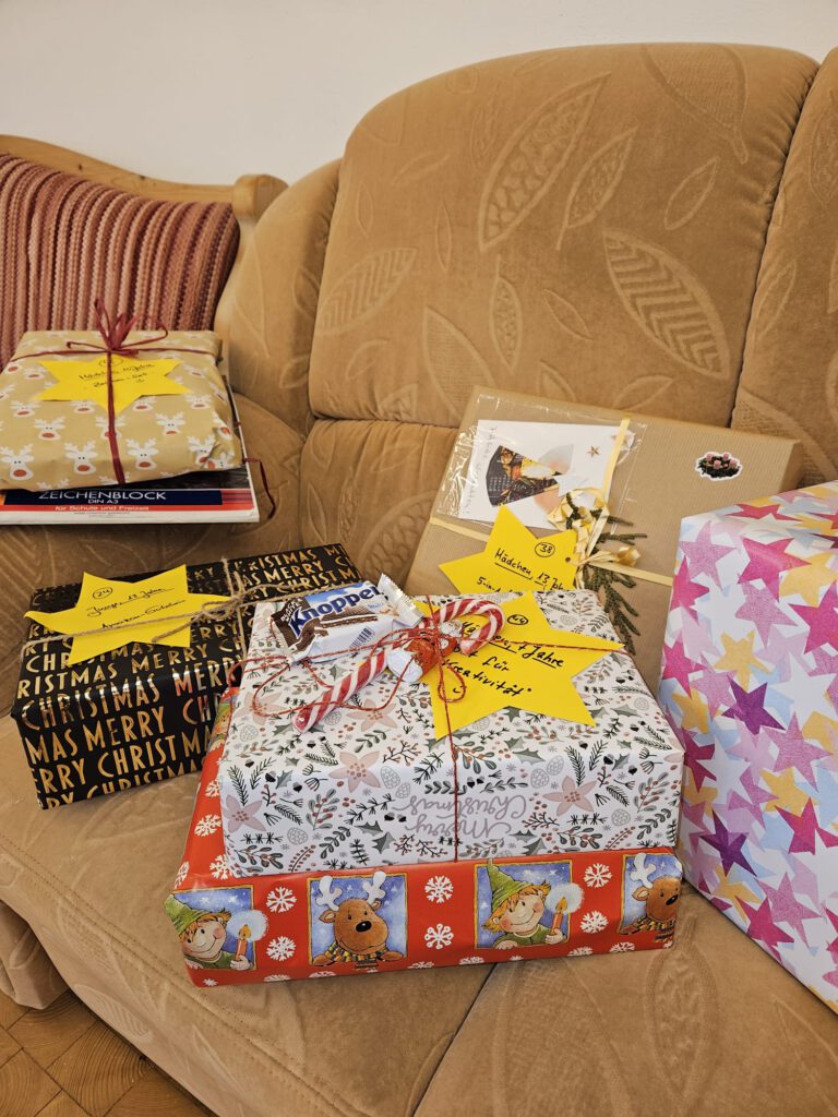 Am 22.12.25 war es wieder so weit. Die Geschenkübergabe der Aktion Sternefunkeln hat viele Kinderaugen zum Strahlen gebracht. Im Gemeindehaus warteten die Geschenke, die auch dieses Jahr wieder von vielen Gomaringern gespendet wurden, auf die Kinder, die sich im Vorfeld für ein „Sterngeschenk“ angemeldet hatten. 72 Weihnachtsgeschenke wurden an diesem Tag verteilt, zusammen mit selbstgemachten Plätzchen, Mandarinen und Ausmalbildern & Bastelkarten mit der Weihnachtsgeschichte.