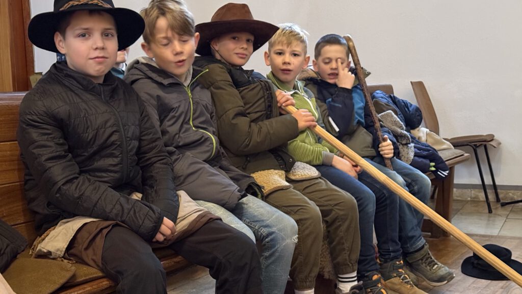 Die Hirten warten auf ihren Auftritt. Sie sehen klasse aus! Morgen um 15.30 Uhr ist es so weit – dann steigt die Premiere, besser gesagt: gleich der große Auftritt, das große Ereignis.