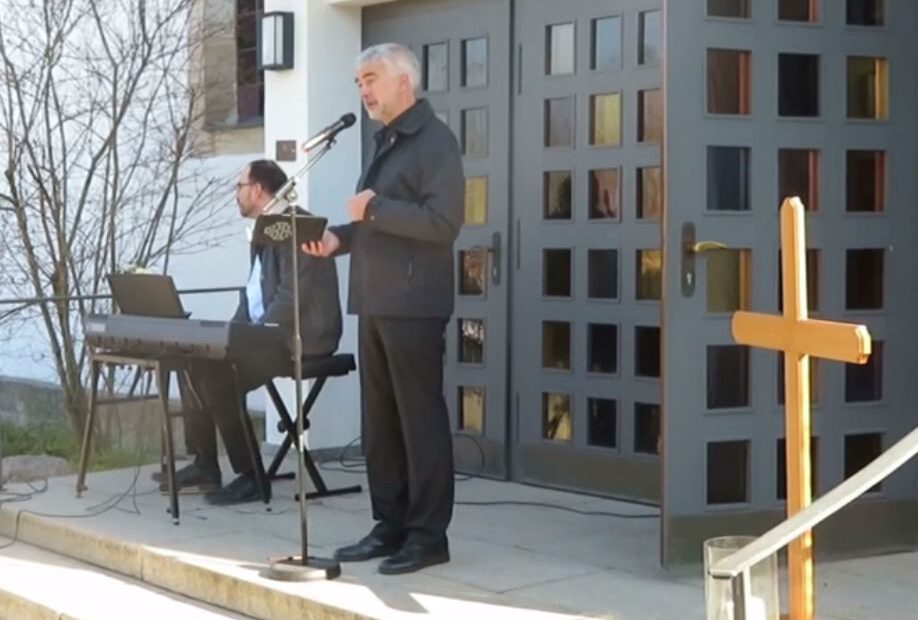 Am vergangenen Sonntag feierten wir unseren Gottesdienst wegen der Corona-Krise erstmals nicht drinnen, sondern draußen!Vor der Kirchentüre gibt es keine Türgriffe, keine Gesangbücher, keine engen… Gottesdienst vor der Kirchentüre
