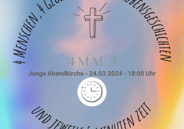 „4 Menschen, 4 Gegenstände, 4 Glaubensgeschichten“. Vier Personen aus der Gemeinde bringen einen Gegenstand mit und erzählen uns, was dieser mit ihrem Glauben zu tun hat. Sonntag, 24.3. um 18 Uhr. Im Anschluss Bewirtung durch das KOSTBAR-Team.