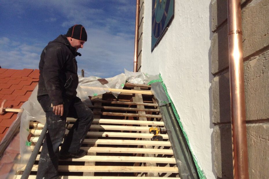 Wie ein überdimensionales Geschenk, das nun ausgepackt wird, kann der frisch renovierte Kirchturm genannt werden, dessen blickdicht bespanntes Baugerüst inzwischen größtenteils entfernt wurde. Das Gebäude… Biberschwanz-Wette zum Kirchendach