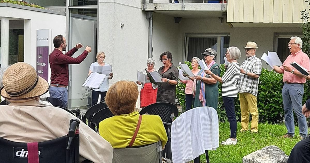 Beim Open-Air-Gottesdienst in Rahmen des Tages „Kirche im Dorf“ sang er am 4. Juli vor dem Eingang des Ilse-Graulich-Hauses in Hinterweiler zwei Renaissance-Motteten aus der Reformationszeit.