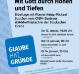 Unsere Vortragsreihen „Glaube hat Gründe“ wollen den Glauben festigen, ohne ihn in dogmatische Richtigkeit einzubetonieren. Manchmal braucht es auch Erschütterungen und überraschende Neuigkeiten, um aus einer eingefahrenen Sackgasse herauszufinden, die zu einer Glaubensblockade oder unnötigem Zweifel geführt hat!