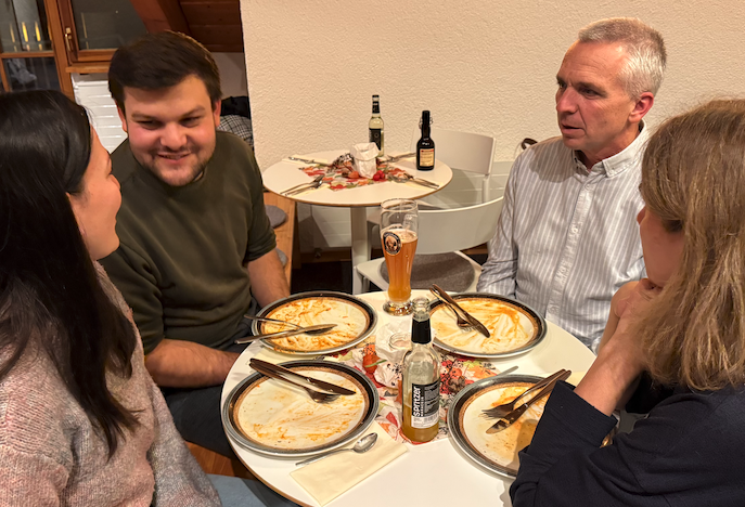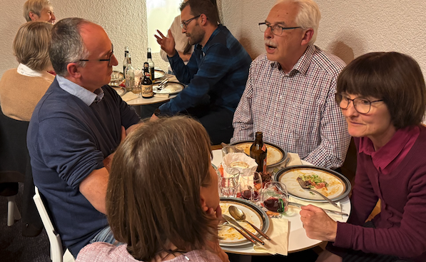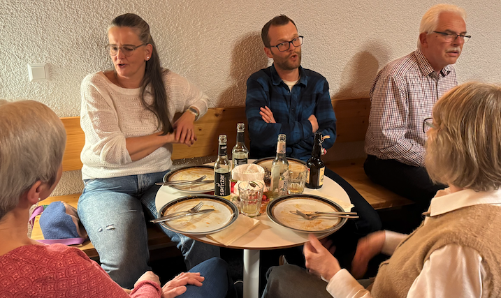Der Kirchengemeinderat, der 2019 gewählt wurde, hat seine Amtszeit inzwischen abgeschlossen. Kurz vor der Wahl kamen wir noch einmal zu einer verkürzten Sitzung zusammen, die dann ganz entspannt in ein gemeinsames Lasagne-Essen überging. Dabei wurde uns wieder bewusst, wie einladend und schön der Gastraum (das „Bistro“) unter dem Dach unseres Gemeindehauses ist!