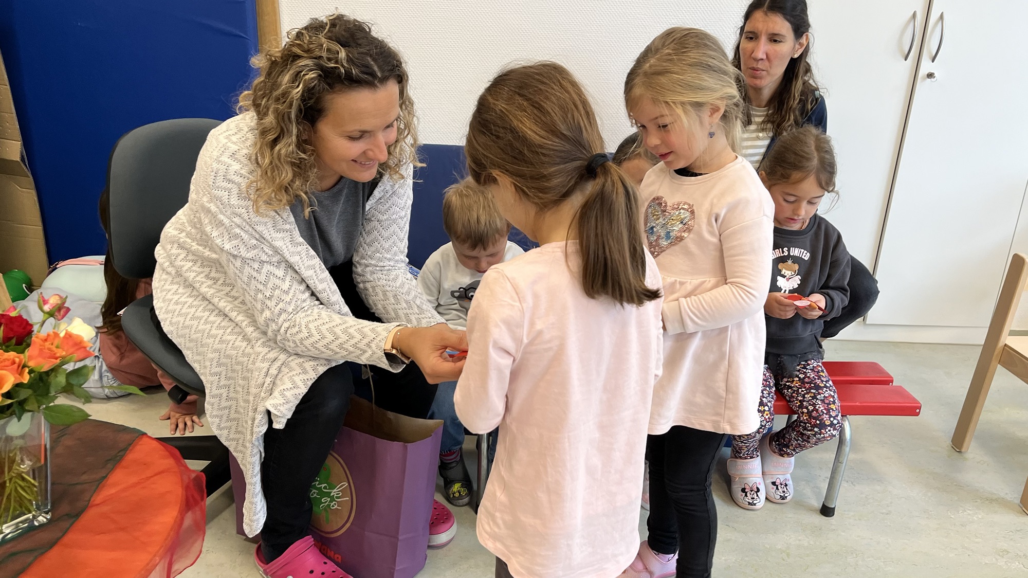 Als Geste des Dankes und der bleibenden Verbundenheit verschenkte sie am Ende selbstgebastelte Schmetterlinge – auf Basis von Wachsmalstiften.