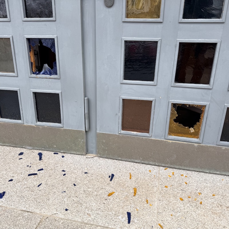 In der Nacht von Freitag (20.2.) auf Samstag wurden an der Eingangstür unserer Kirche drei Glasscheiben mutwillig eingetreten. Dieser Vandalismus macht uns betroffen und ehrlich gesagt auch fassungslos!