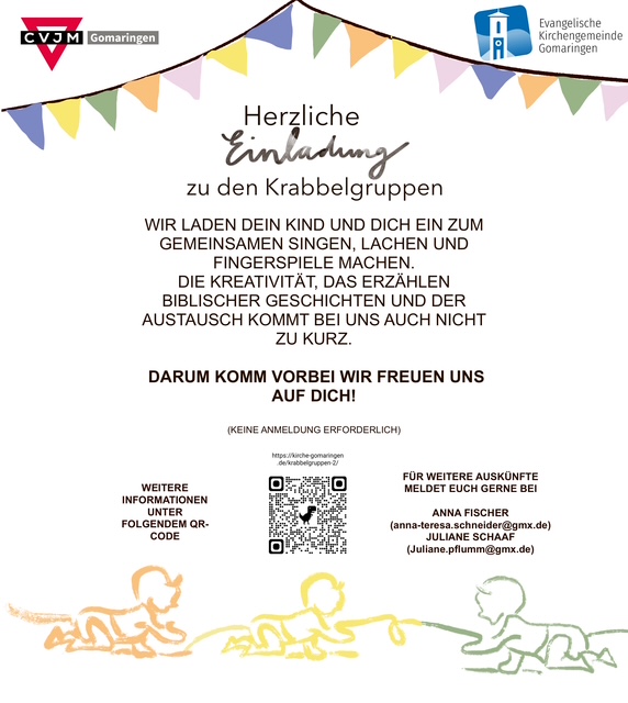 Krabbelgruppe 1. Halbjahr 2025Donnerstag, 10 – 11UhrLena Pfeil Joy Lippert