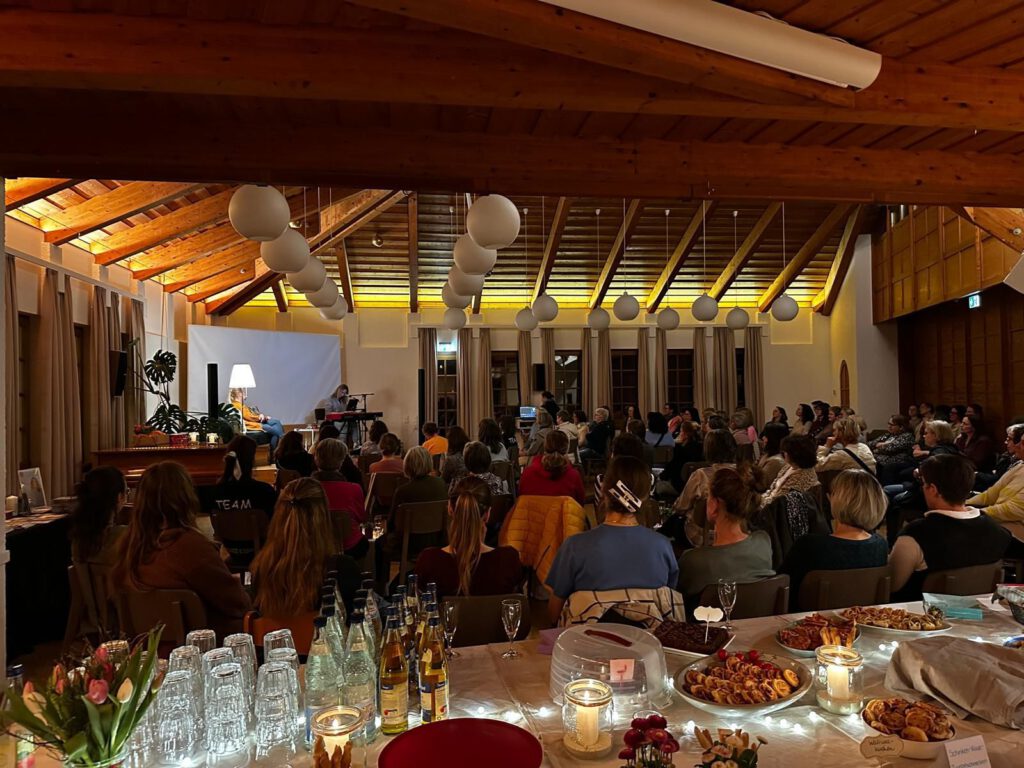 Mit großer Vorfreude wurde der erste „Wohnzimmer“-Abend erwartet – und er hielt, was er versprach. Rund 80 Frauen kamen ins Gemeindehaus und wurden herzlich mit einem Getränk empfangen. Schnell entstand eine offene, entspannte Atmosphäre – fast wie bei einem Abend unter Freundinnen.